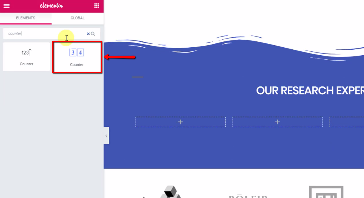 Once you are in the editor, look for Elementor Number Counter widget and drag and drop it on the page. Now we will begin the customization of the counter.